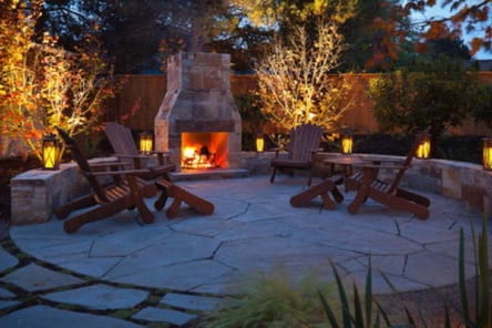 If your space allows it, adding an outdoor stone fireplace or fire pit area will add a more relaxing and inviting feel to your backyard. Adding this feature will create a great place to cozy up with family and friends and enjoy great conversation together.